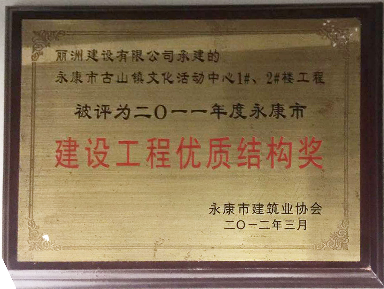 古山文化活动中心永康市建设工程优质结构奖