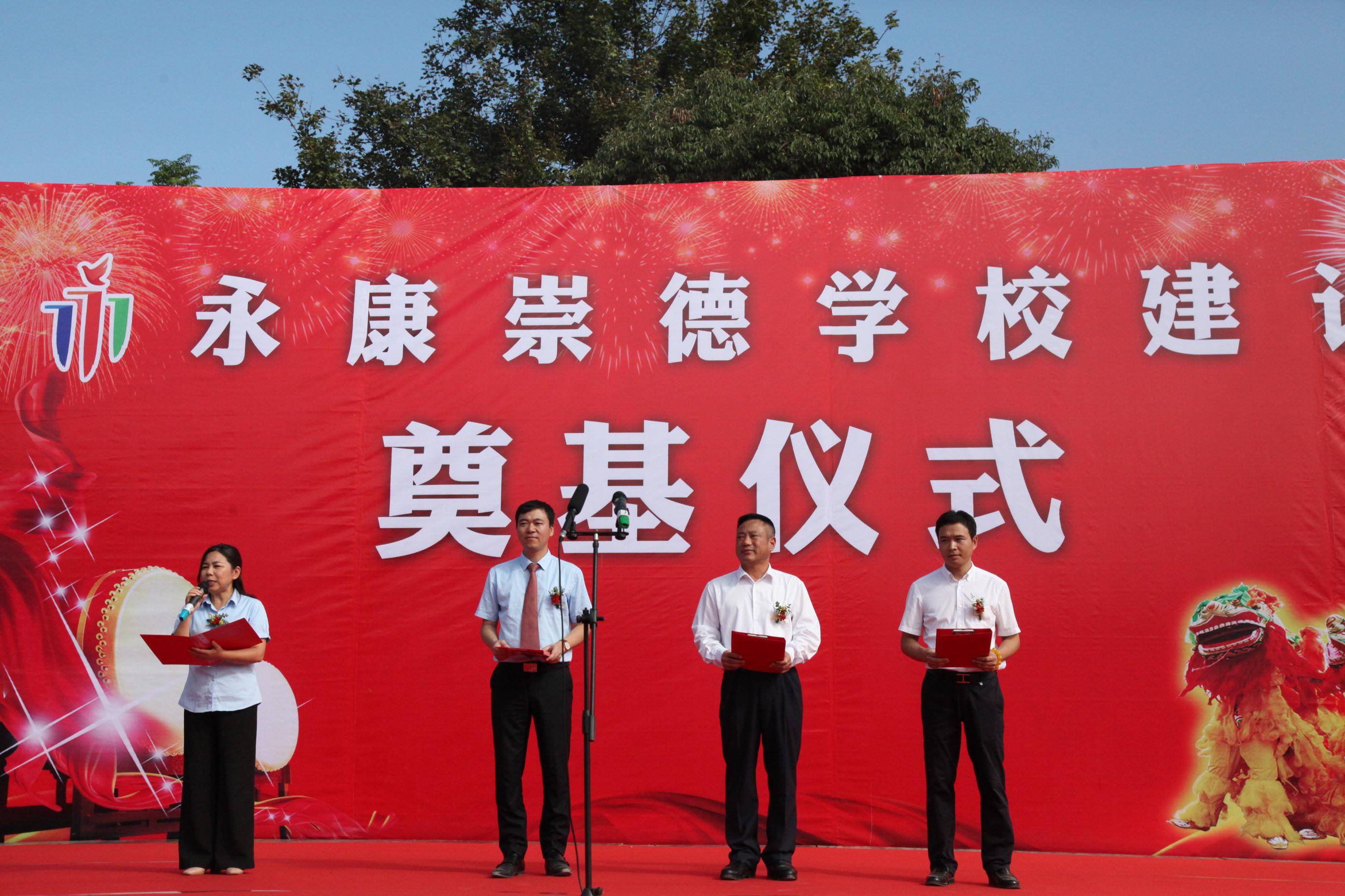 奠基仪式上,永康崇德学校林高峰校长指出崇德学校新校区的建设将是崇德学校的大踏步的发展,崇德学校将在五年内争取完成小学初中的教育完全一体化,争取成为中国乃至浙江壹级的民办学校,并代表崇德学校全体师生祝永康崇德学校工程奠基典礼圆满成功。