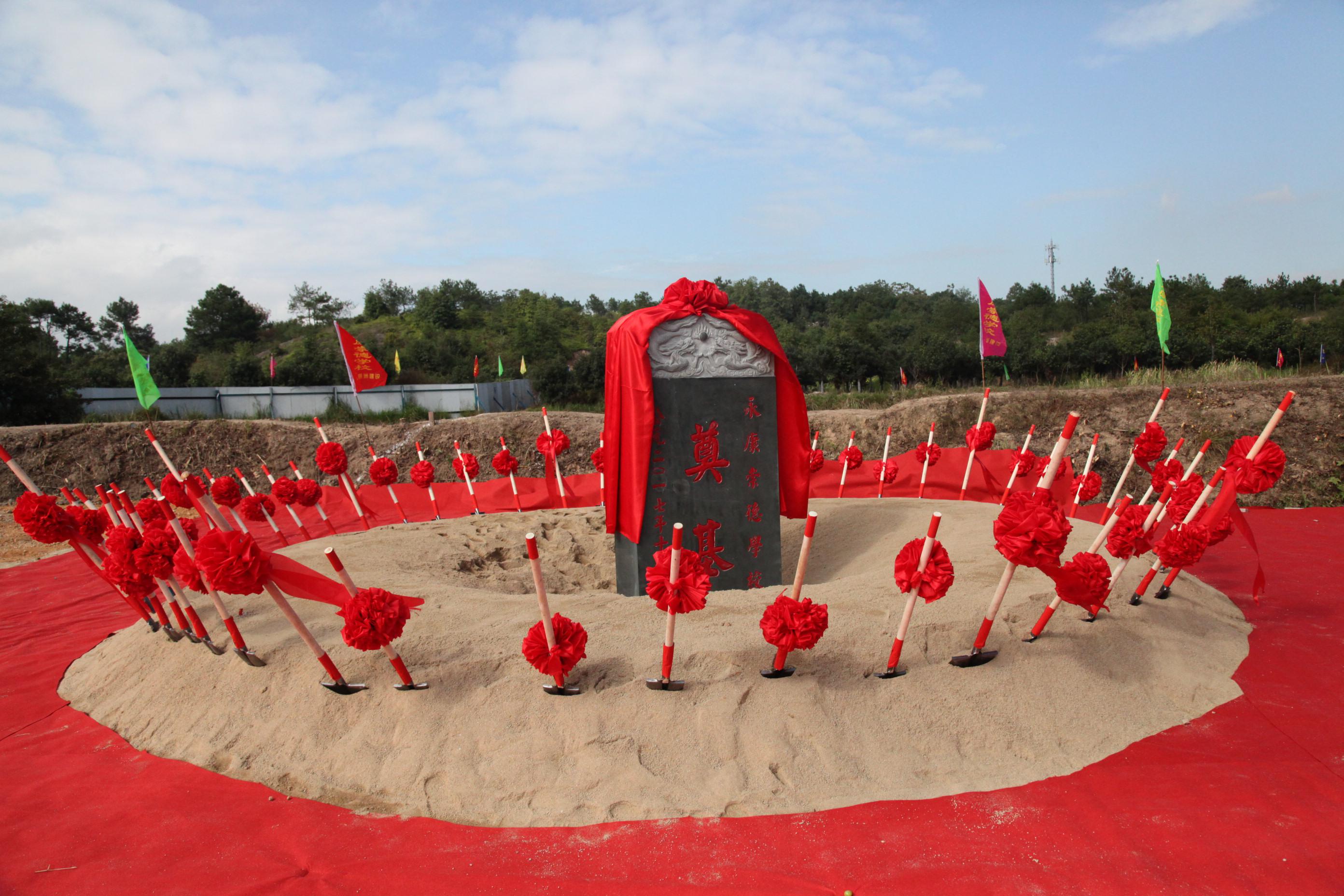 (丽洲建设集团有限公司董事长陈金宝带领崇德学校学生为项目奠基)
