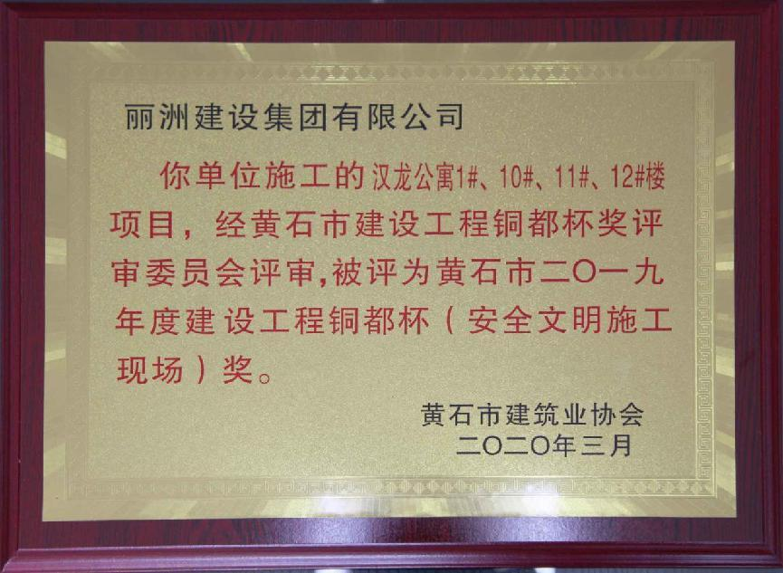 2019年度黄石市建设工程铜都杯(安全文明施工现场)奖