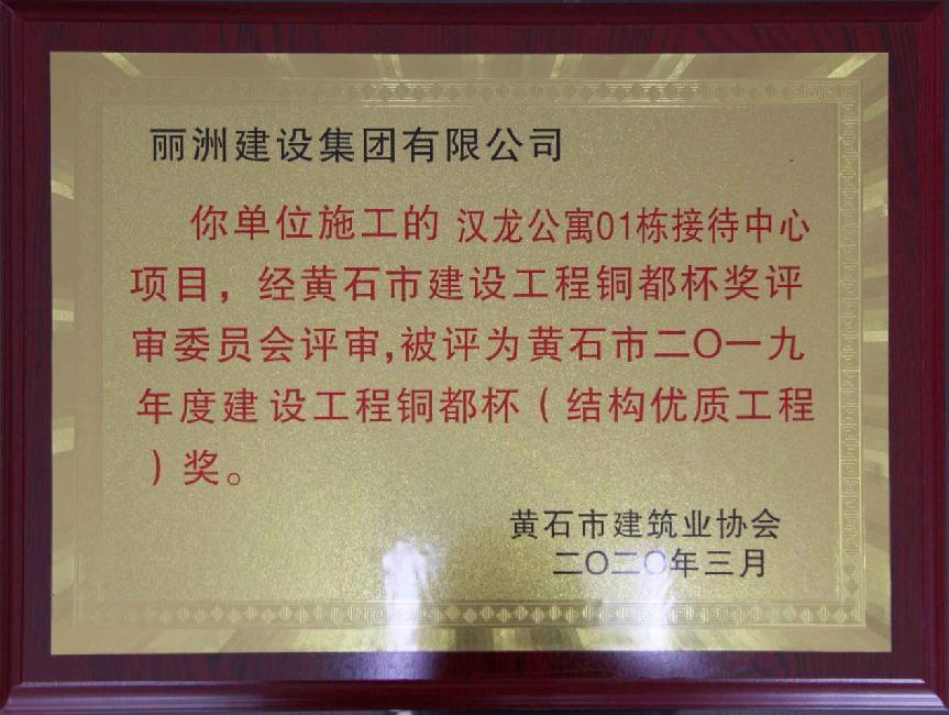 2019年度黄石市建设工程铜都杯(结构优质工程)奖