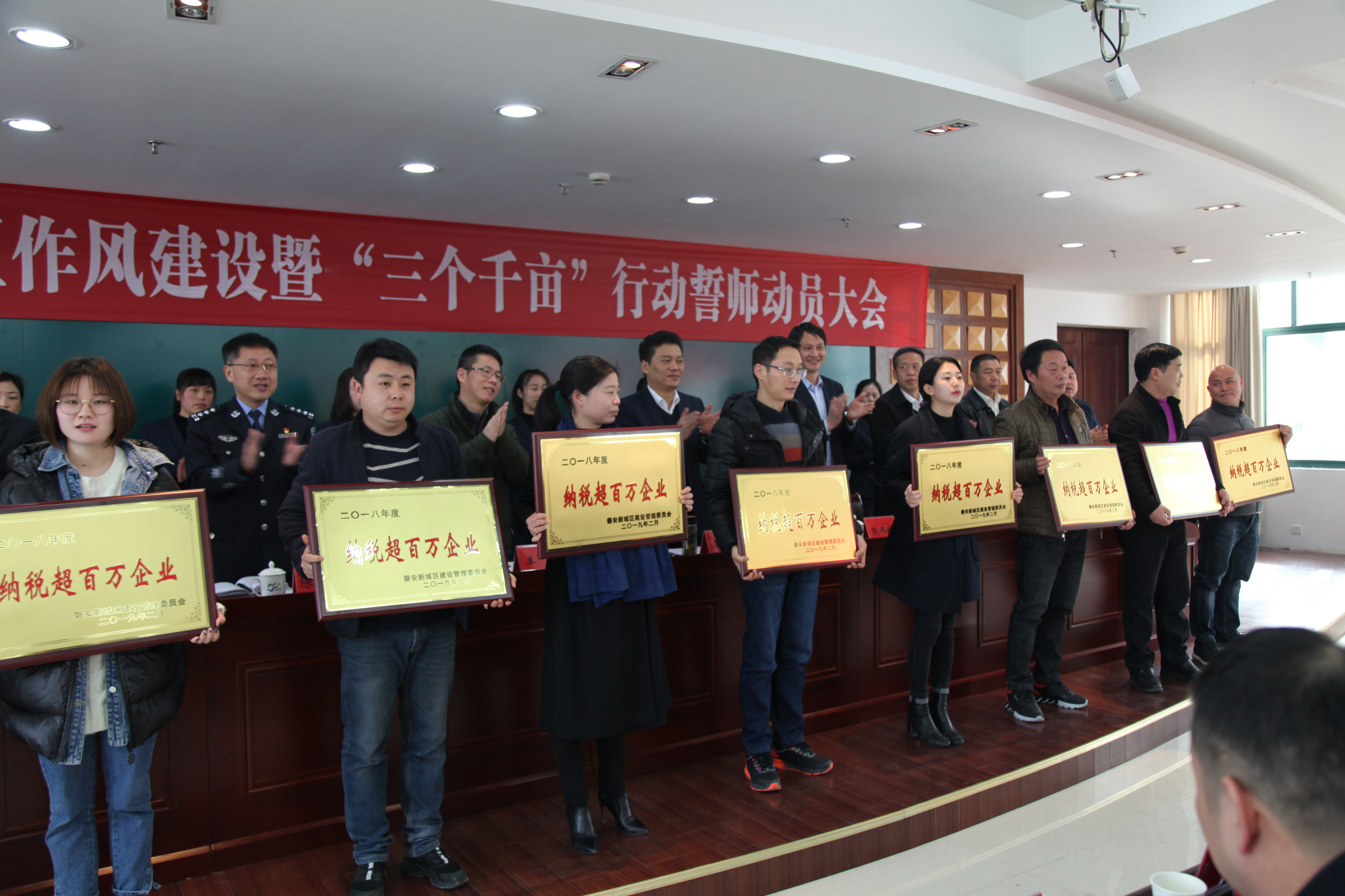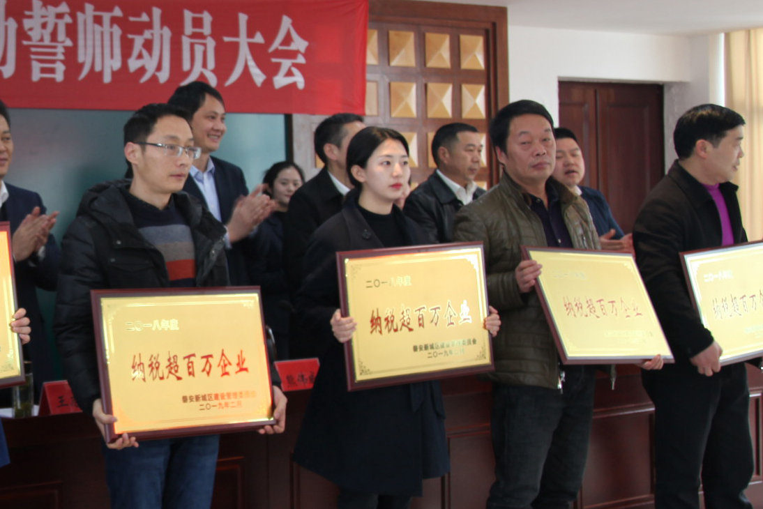 誓师动员大会上丽洲再次被授评纳税超百万企业,2019年度新城管委会发展方向是在总体布局上,正从“一线平推”向“一体两翼”转变。在区块功能上,正从单一的工业园区向产城融合新区转变。在产业定位上,正从碎片化、粗放式向集聚化、高端化转变。