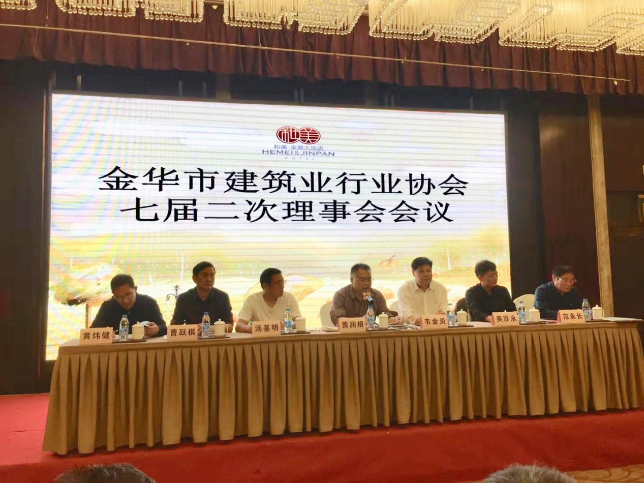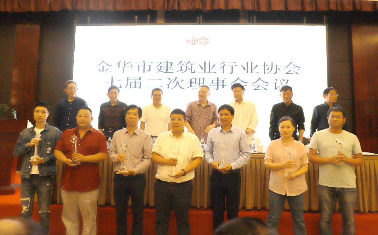10月15日下午,我司受邀前往和美·金磐大饭店参加金华市建筑业行业协会七届二次理事会会议。金华市住房和城乡建设局党委委员、总工程师贾润根,建筑业管理处处长汤基明,轮值会长韦金炎、金华建筑业行业协会会长吴厚永、秘书长黄炜健等一行领导出席会议并颁奖。