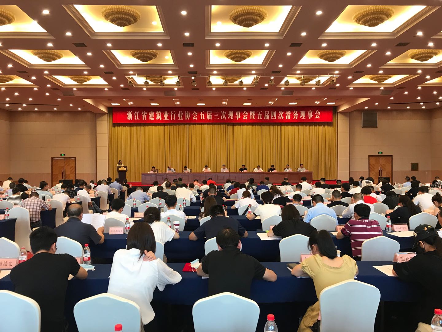 2020年6月5日下午,浙江省建筑业行业协会五届三次理事会暨五届四次常务理事会议在杭州之江饭店主楼5楼千人会场隆重召开。大会表彰了2020年新冠肺炎疫情防控工作先进单位、疫情防控工作先进个人、省建筑业优秀企业家和省建筑业优秀建造师项目经理,同时,对2019年度浙江省建筑业优秀协会、浙江省建筑业先进企业进行授牌。