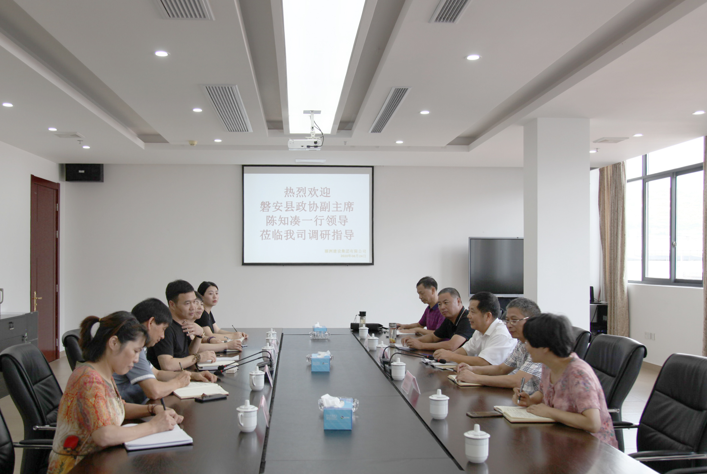 8月24日下午,磐安县政协副主席陈知凑携县政协专委主任郑坚良、县建设局副局长潘志荣、县政协常委杨显萍、县建筑业协会主任徐秀康一行领导莅临我公司调研指导工作,公司董事长陈金宝、执行总裁金裕民、副总裁陈萍华、财务总监陈芬芳参加调研会。