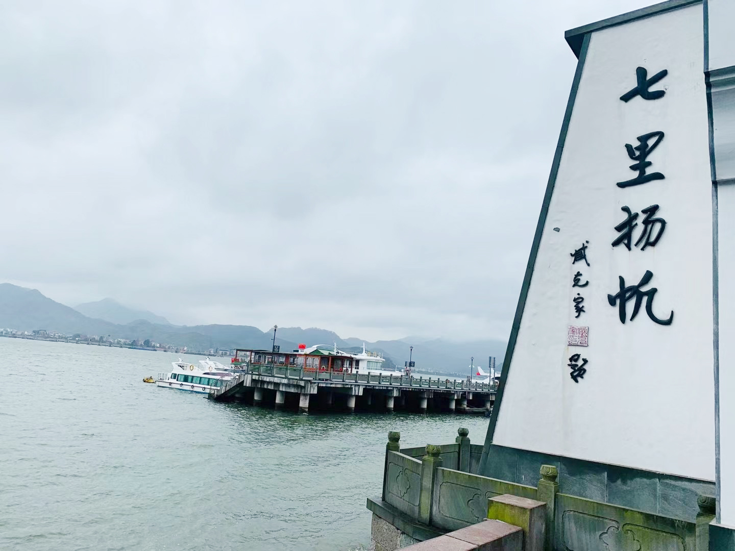 第一站我们来到了建德七里扬帆绿道,我们在姚坞旅游码头登船,浏览了旅游界有"小三峡"风情的建德七里扬帆,它以"山青、水清、史悠、境幽"为特色,是富春江风光的精华。其间,我们先后参观了子胥野渡和葫芦飞瀑;在子胥野渡体会了伍子胥面临茫茫大江阻挡心情,在葫芦飞瀑感受大自然的鬼斧神工。游船2小时,领略了“人行明镜中,帆浮翠屏间”之唐诗意境,同时,深刻体会了“奇山异水,天下独绝”的诗境。