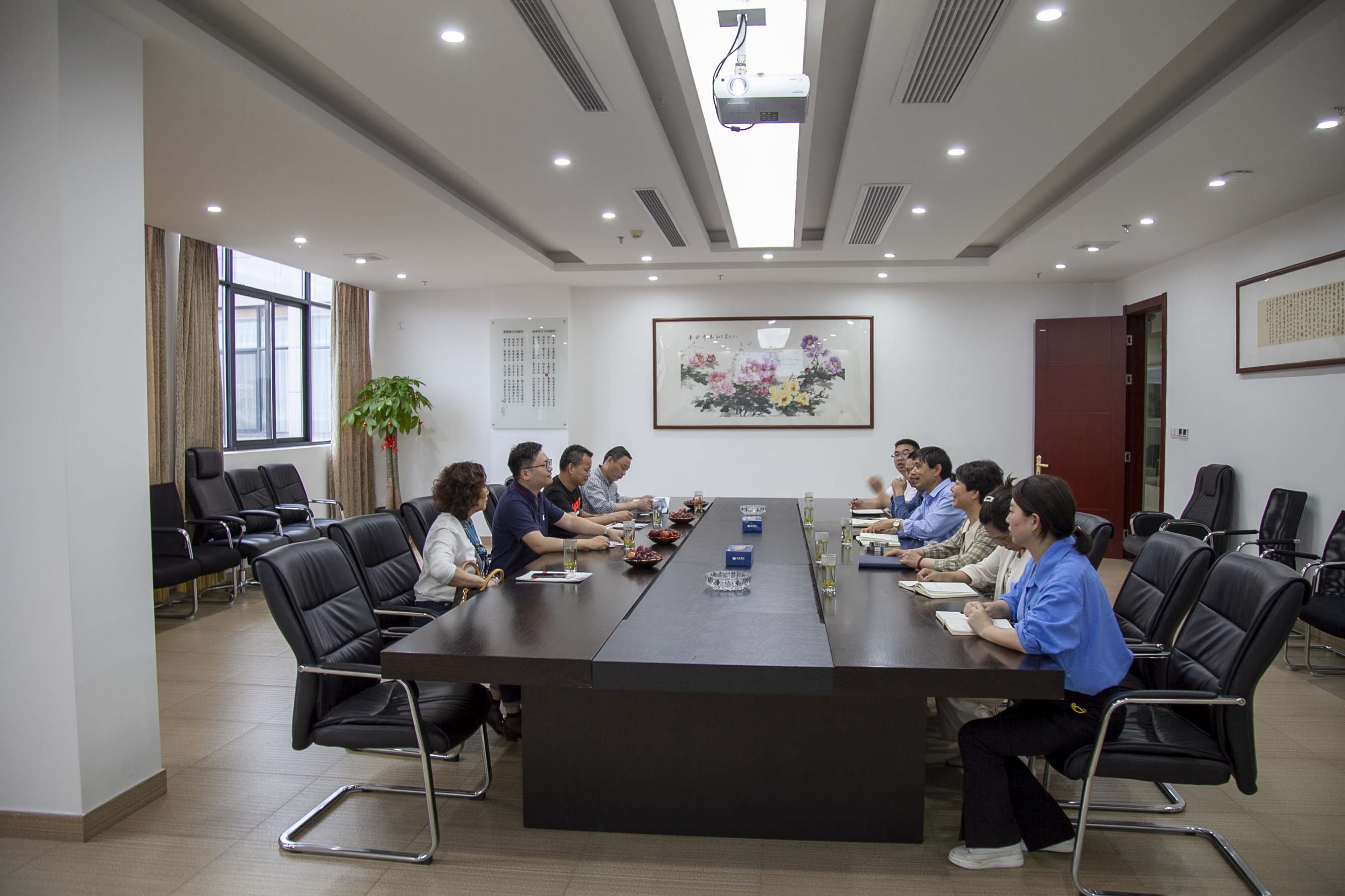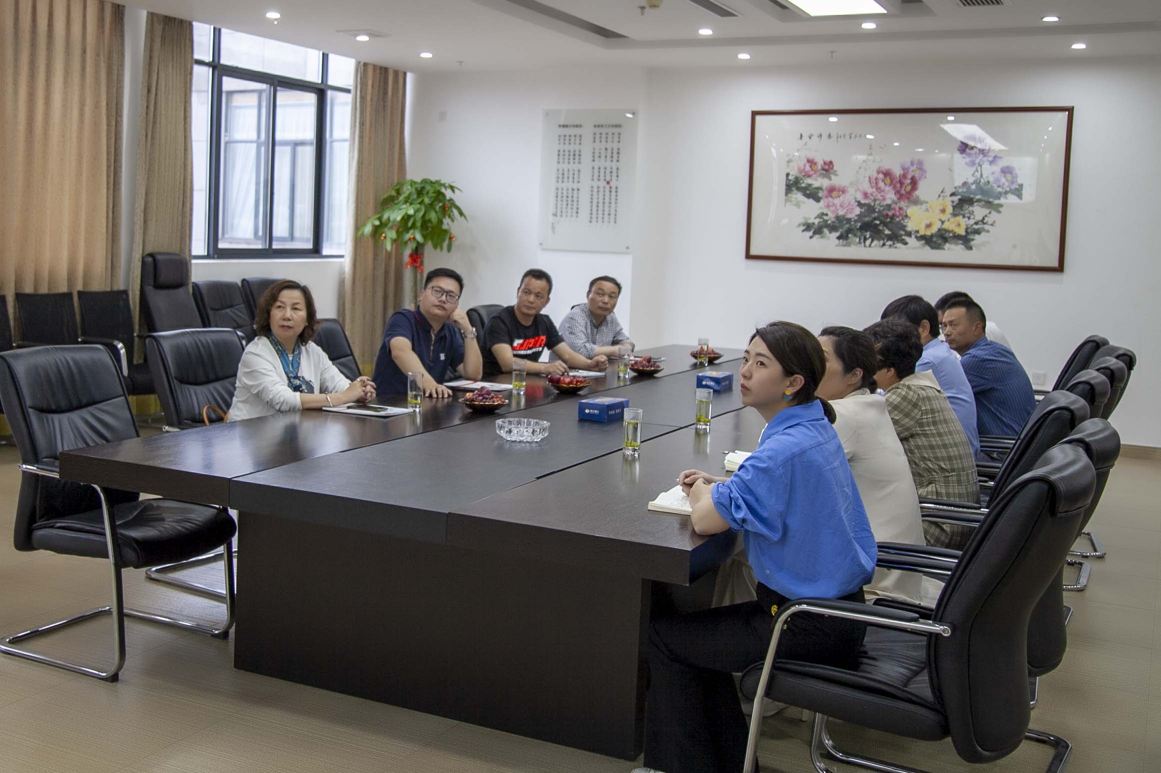 5月6日下午,江苏卡森置业有限公司总经理金静波、卡森全资子公司磐安信润置业有限公司蒋总一行莅临我公司洽谈指导,丽洲集团执行总裁金裕民、副总裁陈萍华、财务总监陈芬芳及集团总部各部门负责人陪同考察洽谈。