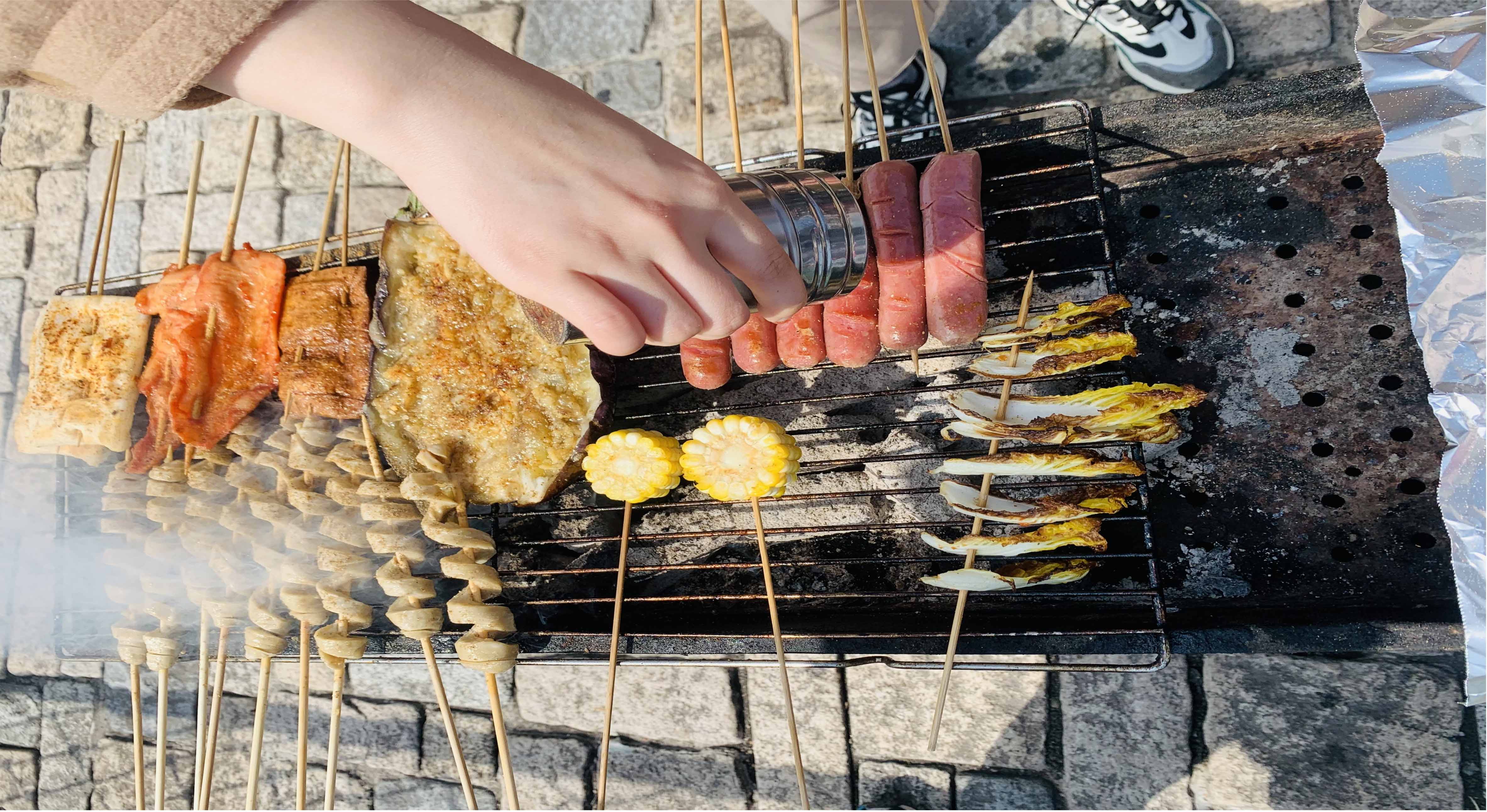 我们先是在景区内完成集体烧烤活动,同事们亲自动手手,互相合作,女同胞们包饺子,男同胞们上架烧烤,大家边烤边吃、边吃边聊;同时还不忘相互递送烤好的成品,在协作和关爱中,充分享受“自己动手、丰衣足食”的乐趣。