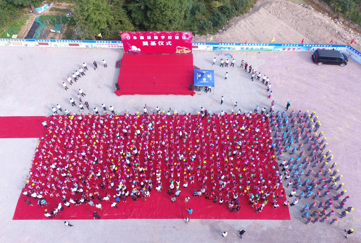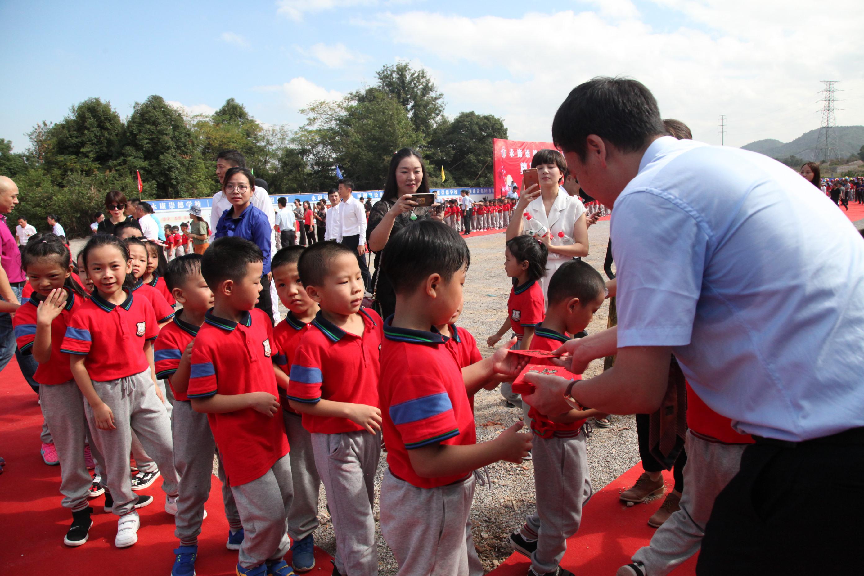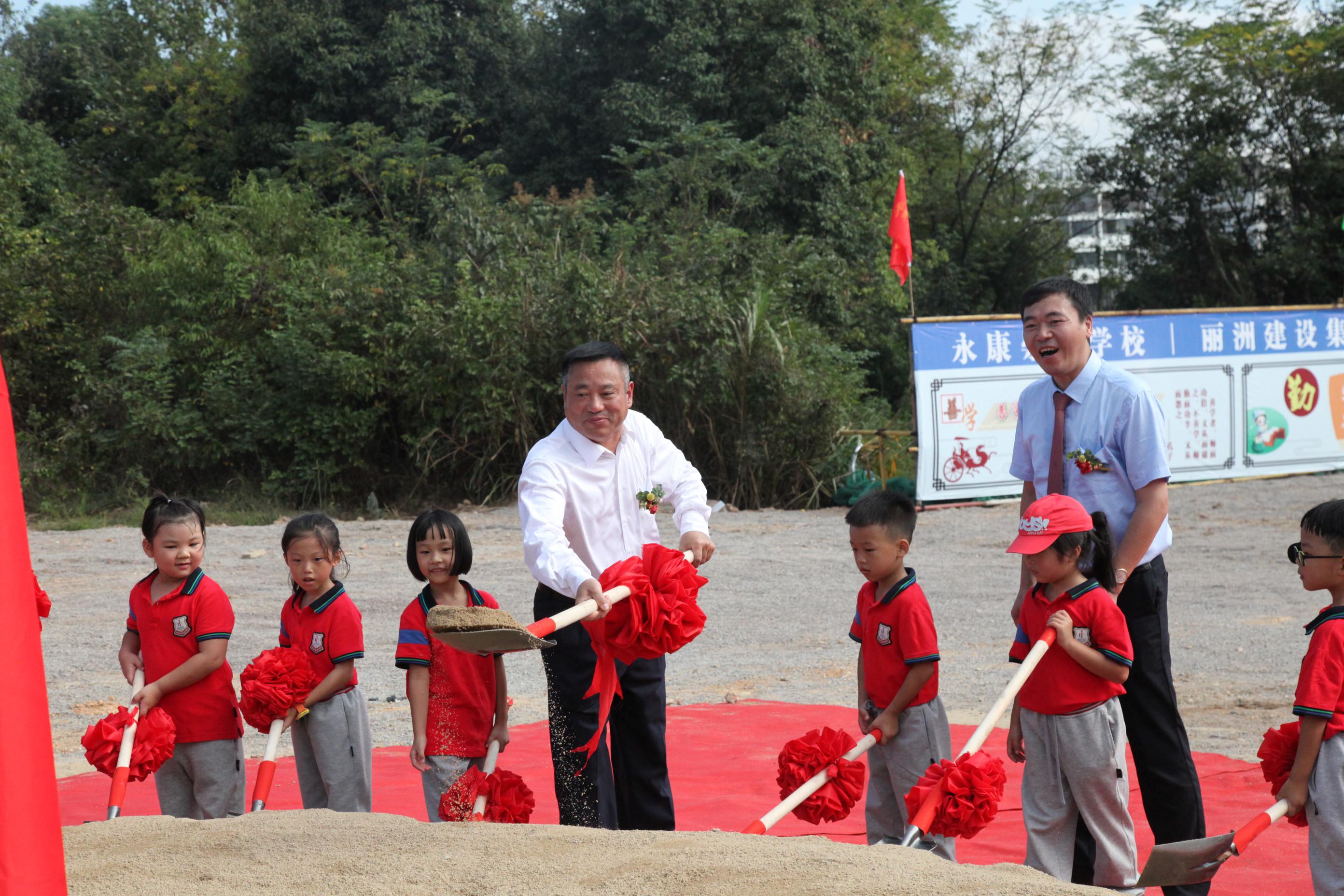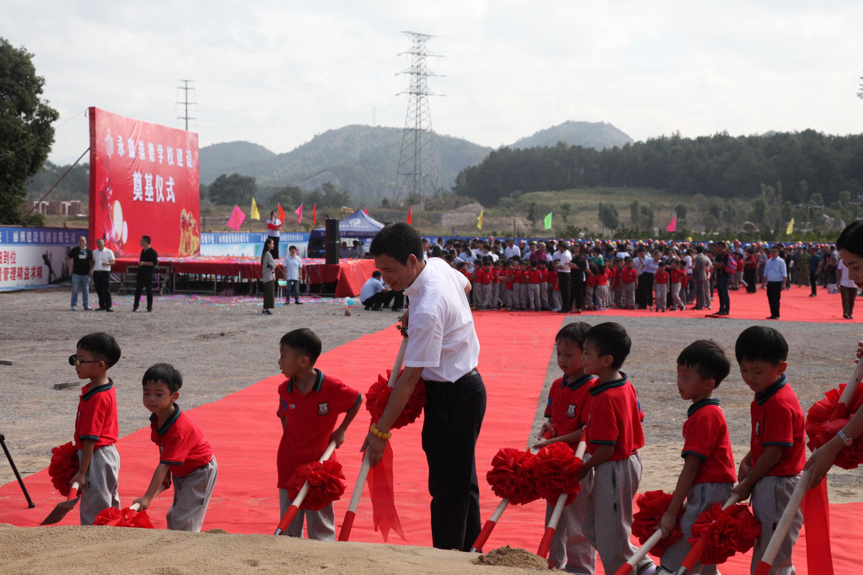 (丽洲建设集团有限公司董事长陈金宝带领崇德学校学生为项目奠基)